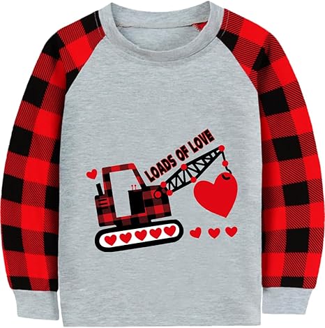 Toddler Boys Valentine Day Shirt Monster Truck Dino Shark Heart Tshirt Red Plaid Long Sleeve Tops for Kids 2-7 Years