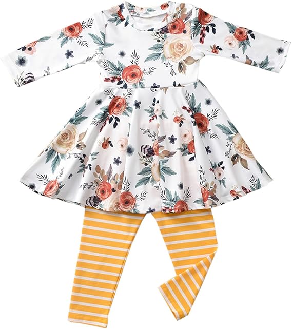 Toddler-Girls-Fall-Clothes-Set Little Girls Highlow Tunic Tops+Leggings Outfit Boutique Clothing