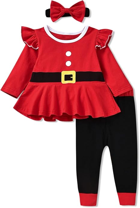 Toddler Girls Christmas Plaid Outfits 3Pcs Infant Baby Tunic Pants Fall Winter Clothes Set