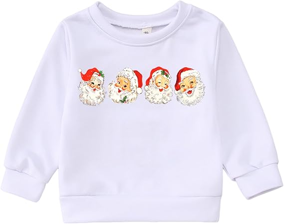 Toddler Boy Girl Christmas Sweatshirt Kid Xmas Santa Graphic Shirt Tops Baby Long Sleeve Crewneck Winter Clothes