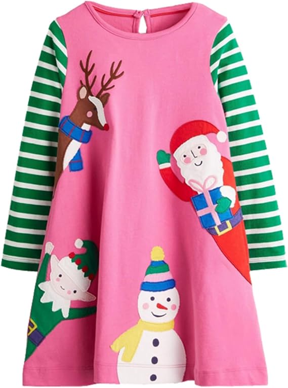 Toddler Girl Long Sleeve Dress Cotton Casual Basic Tunic Dresses Cartoon Applique Dress Kids Fall Winter Clothes