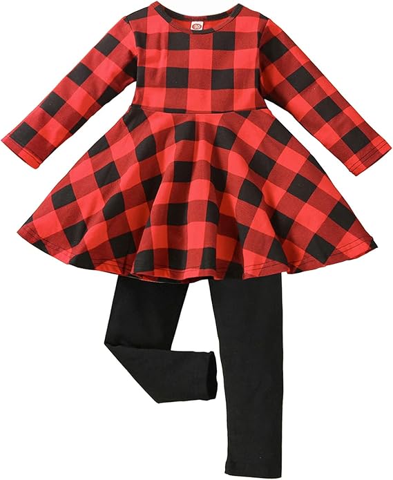 Toddler Girl Christmas Outfits Plaid Dress Solid Shirt Suspender Skirt 1T 2T 3T 4T 5T Kids Girls Overall Dress Set