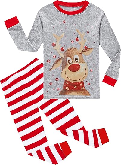 Little Boys Girls Christmas Pajamas Kids Reindeer Pjs Toddler Holiday Clothes Long Sleeve 2 Pcs Cotton Sleepwear Sets 1-7T