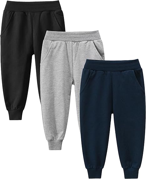 Toddler Boys 2 Pack Cotton Active Jogger Sweatpants,Kids Casual Athletic Solid Pocket Pull On Pants